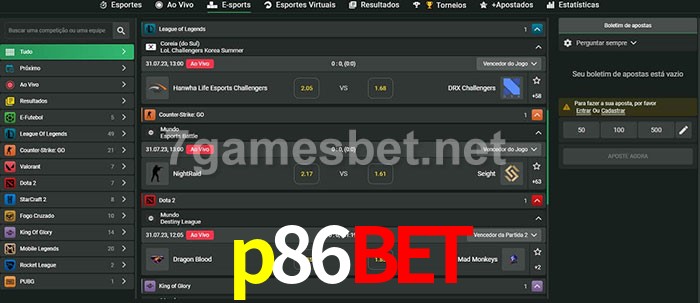 O p86bet oferece uma grande seleção de opções de apostas em e-sports com probabilidades competitivas